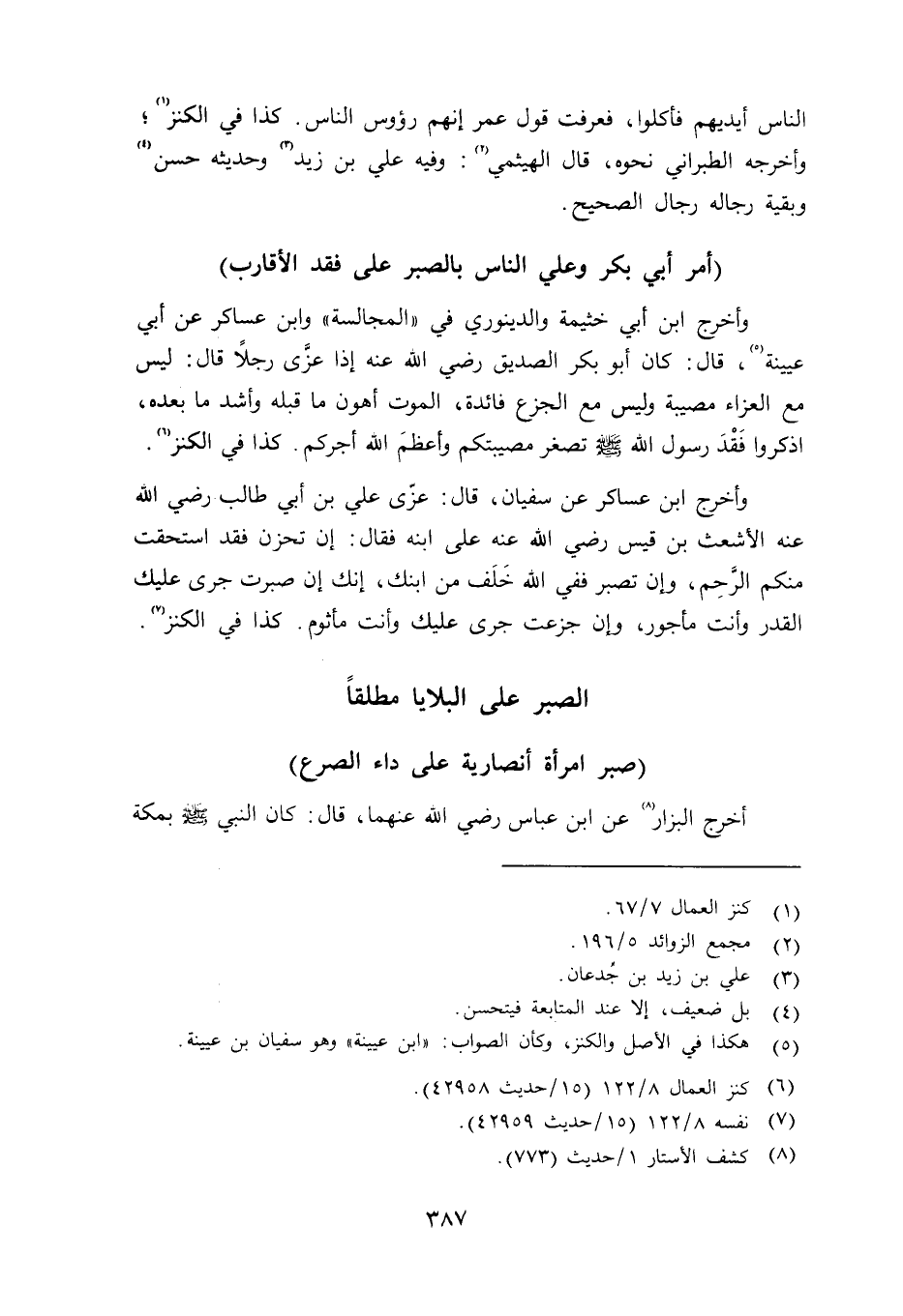 الصبر على البلايا مطلقا