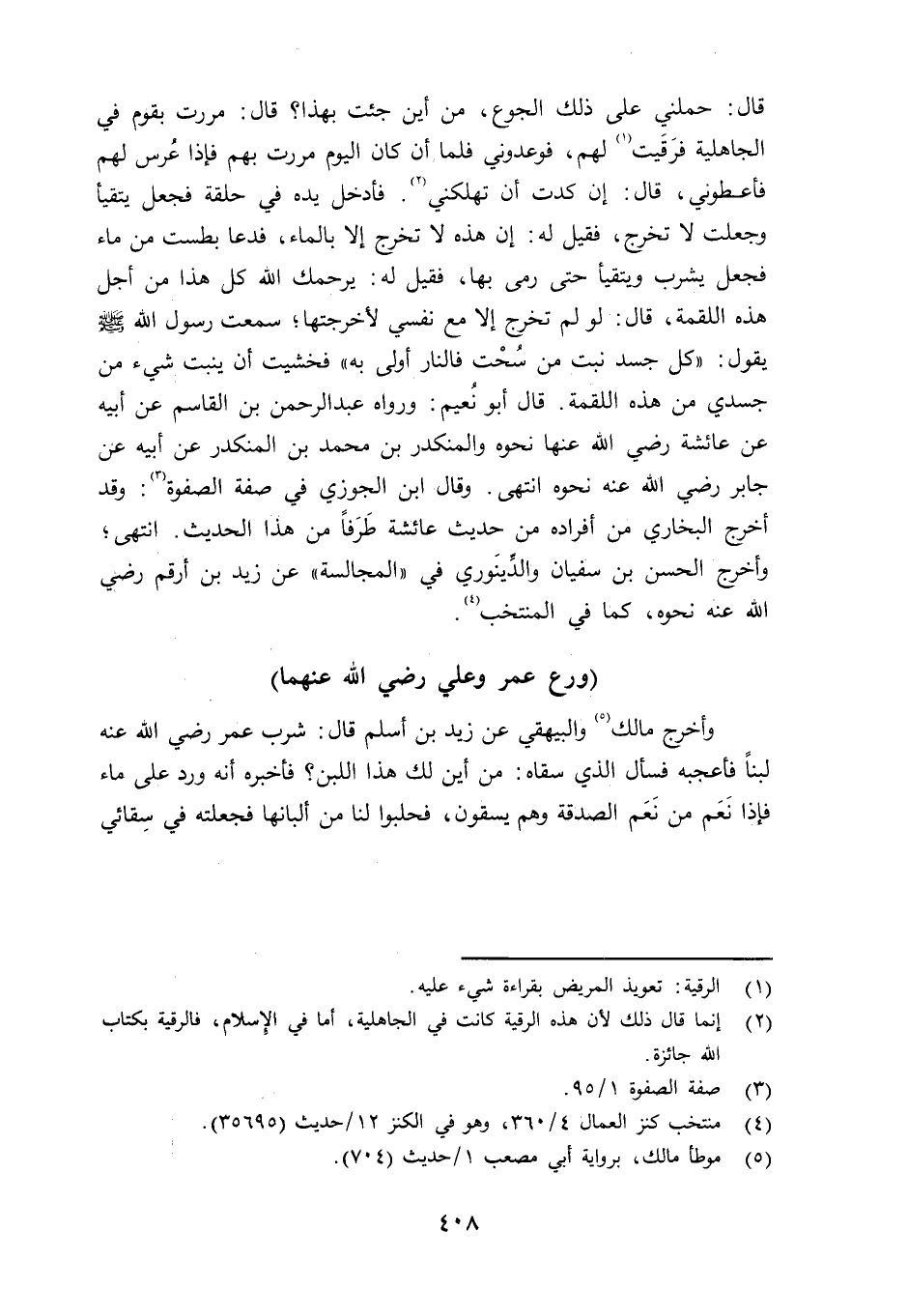 وأخرج مالك والبيهقي عن زيد بن أسلم قال: شرب عمر رضي الله عنه لبناً فأعجبه فسأل الذي سقاه: من أين لك هذا اللبن؟ فأخبره أنه ورد على ماء فإذا نَعَم من نعم الصدقة وهم يسقون، فحليوا لنا من ألبانها فجعلته في سقائي