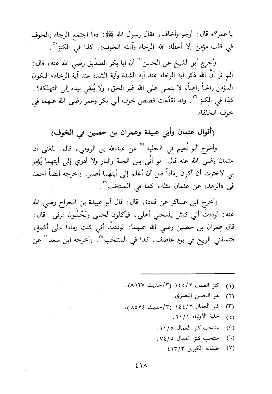 أقوال عمان وأبي عبيدة وعمران بن حسين في الخوف