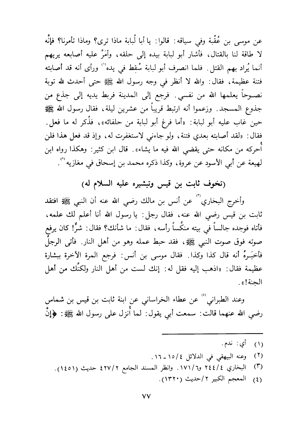 وأخرج البخاري عن أنس بن مالك رضي الله عنه أن النبي صلى الله عليه وسلم افتقد ثابت بت قيس رضي الله عنه، فقال رجل: يا رسول الله أنا أعلم لك علمه، فأتاه فوجده جالساً في بيته منكِّساً رأسه، فقال: ما شأنك؟ فقال: شرٌّ كان يرفع صوته فوق صوت النبي صلى الله عليه وسلم فقد حبط عمله وهو من أهل النار. فأتى الرجل (النبي صلى الله عليه وسلم فأخبره أنه قال كذا وكذا. فقال موسى بن أنس: فرجع المرة الآخرة ببشارة عظيمة فقال: «اذهب إليه فقل له: إنك لست من أهل النار ولكنَّك من أهل الجنة» .