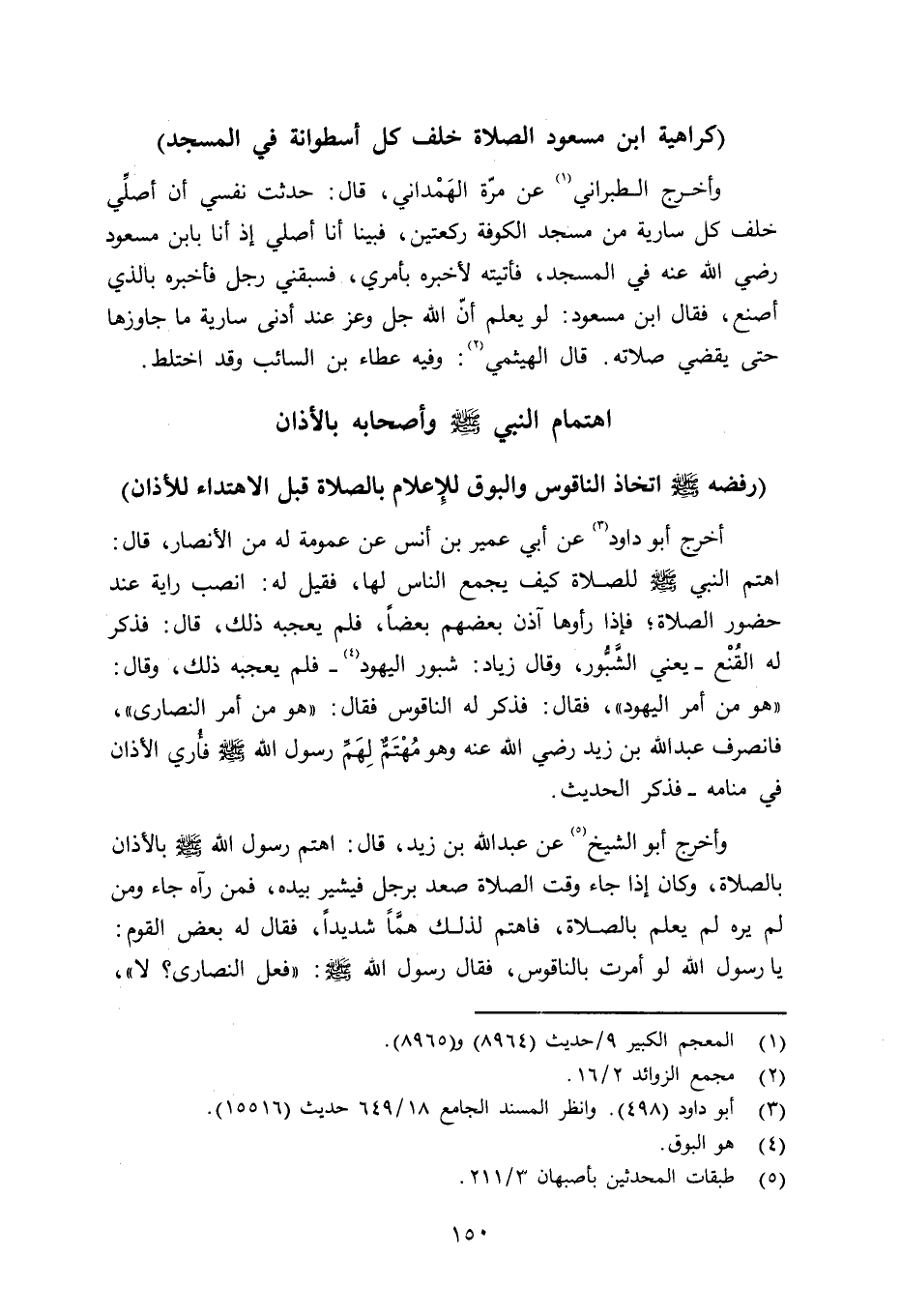 أخرج أبو داود عن أبي عمير بن أنس عن عمومة له من الأنصار قال: اهتم النبي صلى الله عليه وسلم للصلاة كيف يجمع الناس لها، فقيل له: انصب راية عند حضور الصلاة؛ فإذا رأوها آذن بعضهم بعضاً، فلم يعجبه ذلك، قال: فذكر له القُنْع - يعني الشَّبُور، وقال زياد: شبور اليهود - فلم يعجبه ذلك، وقال: «وهو من أمر اليهود» ، فقال: فذكر له الناقوس فقال: «هو من أمر النصارى» ، فانصرف عبد الله بن زيد رضي الله عنه وهو مهتم لِهَمِّ رسول الله صلى الله عليه وسلم فأُري الأذان في منامه - فذكر الحديث.