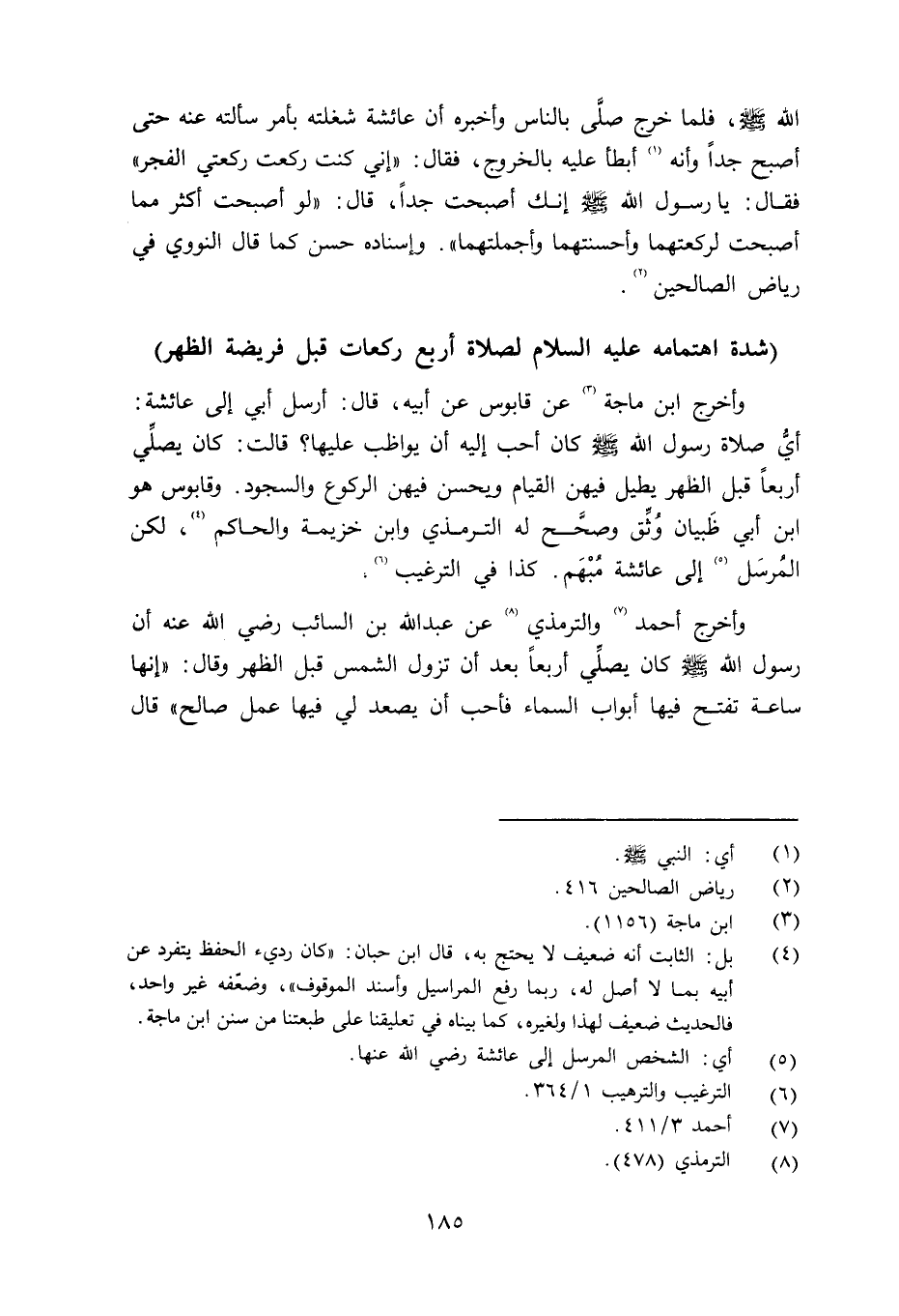شدة اهتمامه عليه السلام لصلاة أربع ركعات قبل فريضة الظهر