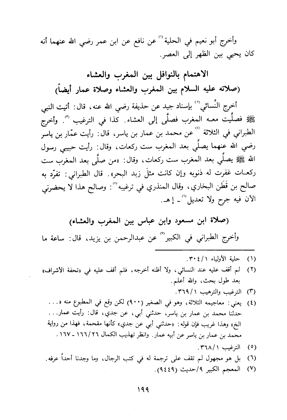 صلاته عليه السلام بين المغرب والعشاء وصلاة عمار أيضا