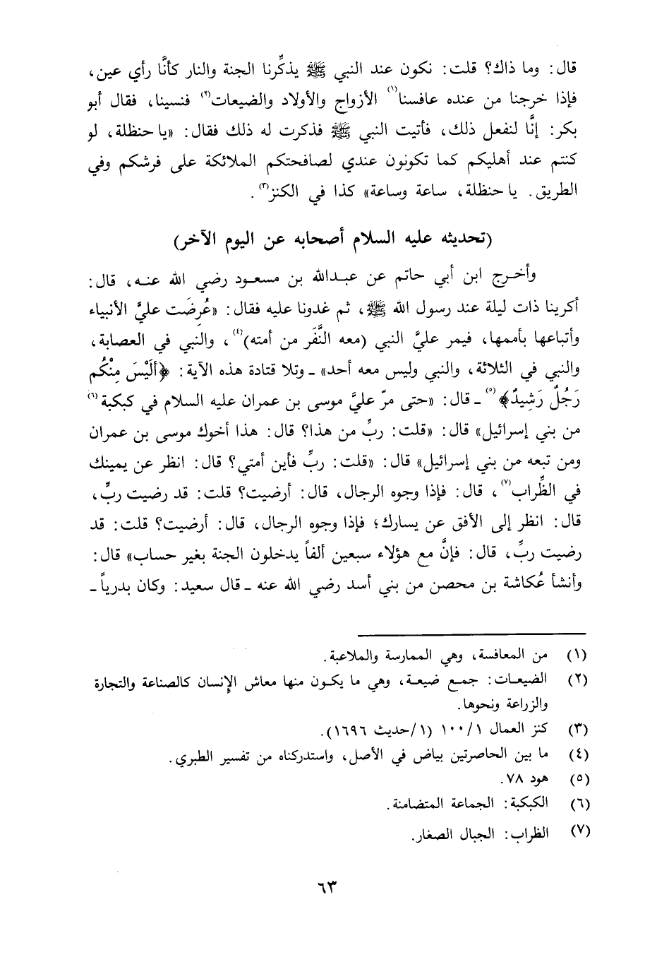 تحديثه عليه السلام أصحابه عن اليوم الآخر