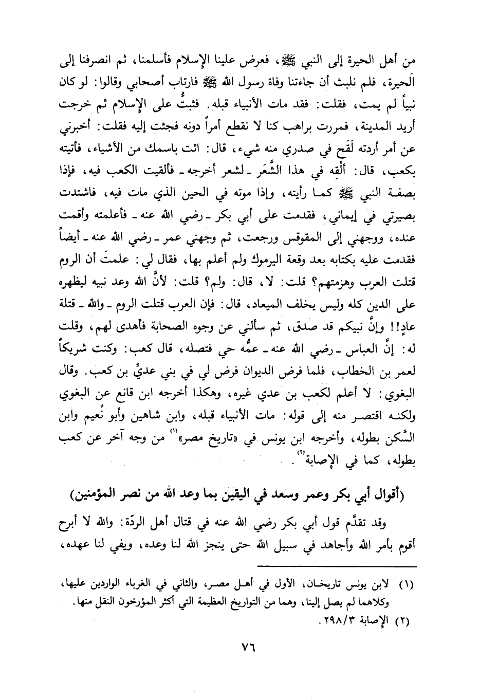 أقوال أبي بكر وعمر وسعد في اليقين بما وعد الله من نصر المؤمنين