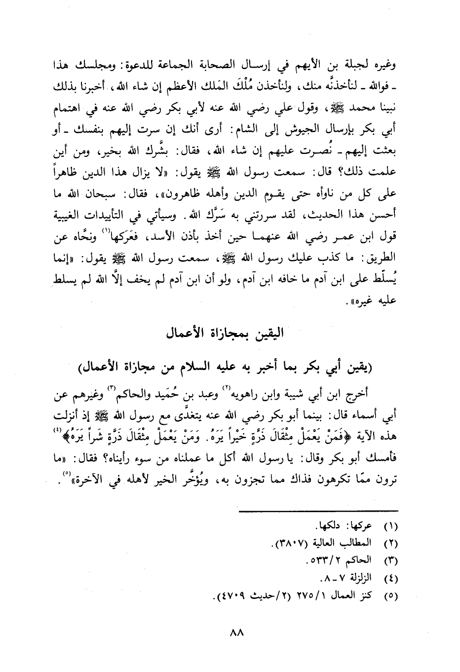 يقين أبي بكر بما أخبره به عليه السلام من مجازاة الأعمال
