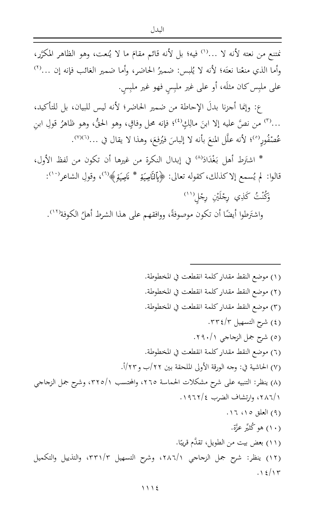 (¬١٢) ينظر: شرح جمل الزجاجي ١/ ٢٨٦، وشرح التسهيل ٣/ ٣٣١، والتذييل والتكميل ١٣/ ١٤.