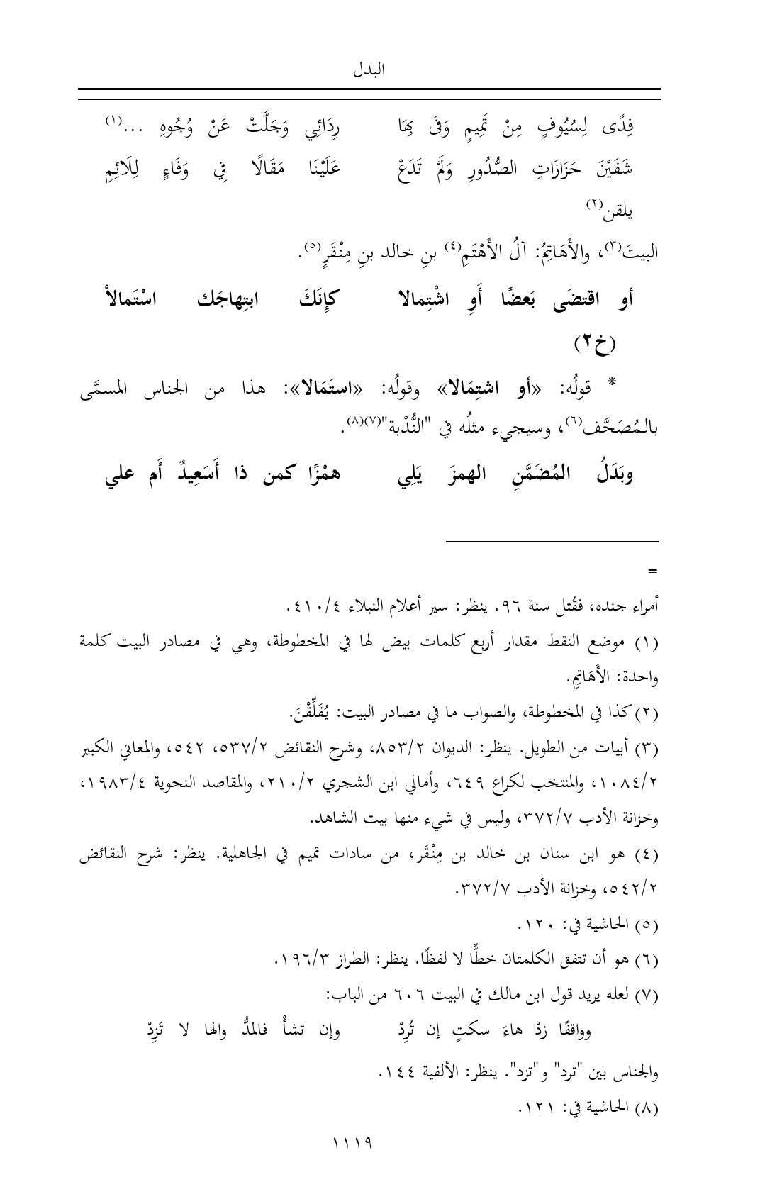 * قولُه: «أو اشتِمَالا» وقولُه: «استَمَالا»: هذا من الجناس المسمَّى بالمُصَحَّف (¬٦)، وسيجيء مثلُه في "النُّدْبة" (¬٧) (¬٨).