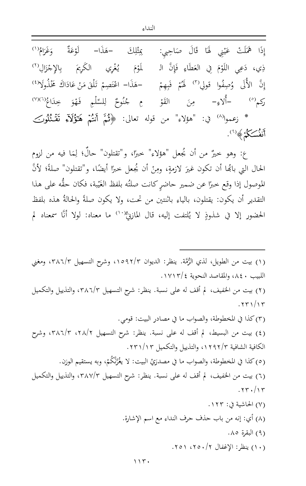* زعموا (¬٨) في: "هؤلاء" من قوله تعالى: {ثُمَّ أَنْتُمْ هَؤُلَاءِ تَقْتُلُونَ أَنْفُسَكُمْ} (¬٩).