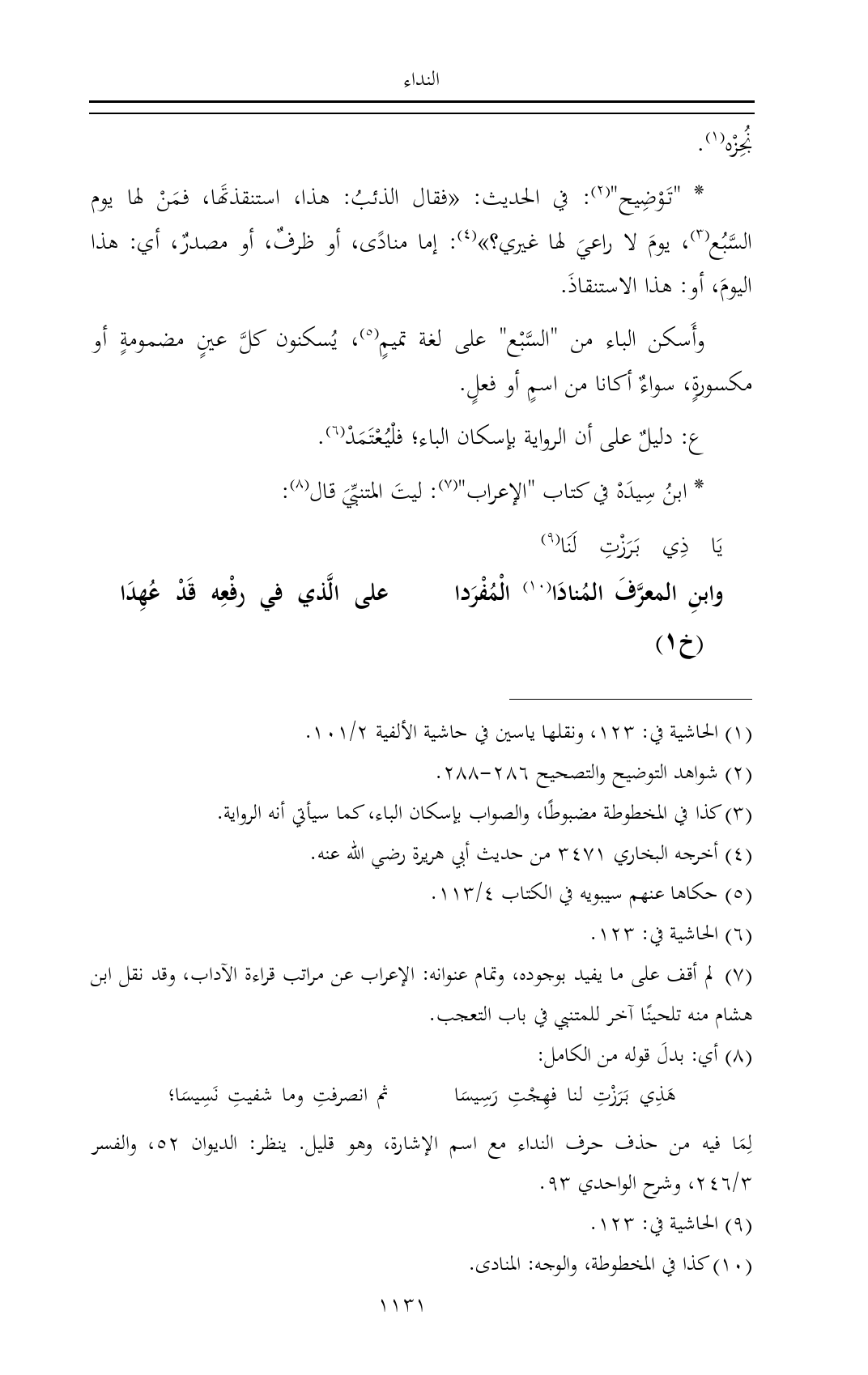 (¬١٠) كذا في المخطوطة، والوجه: المنادى.
