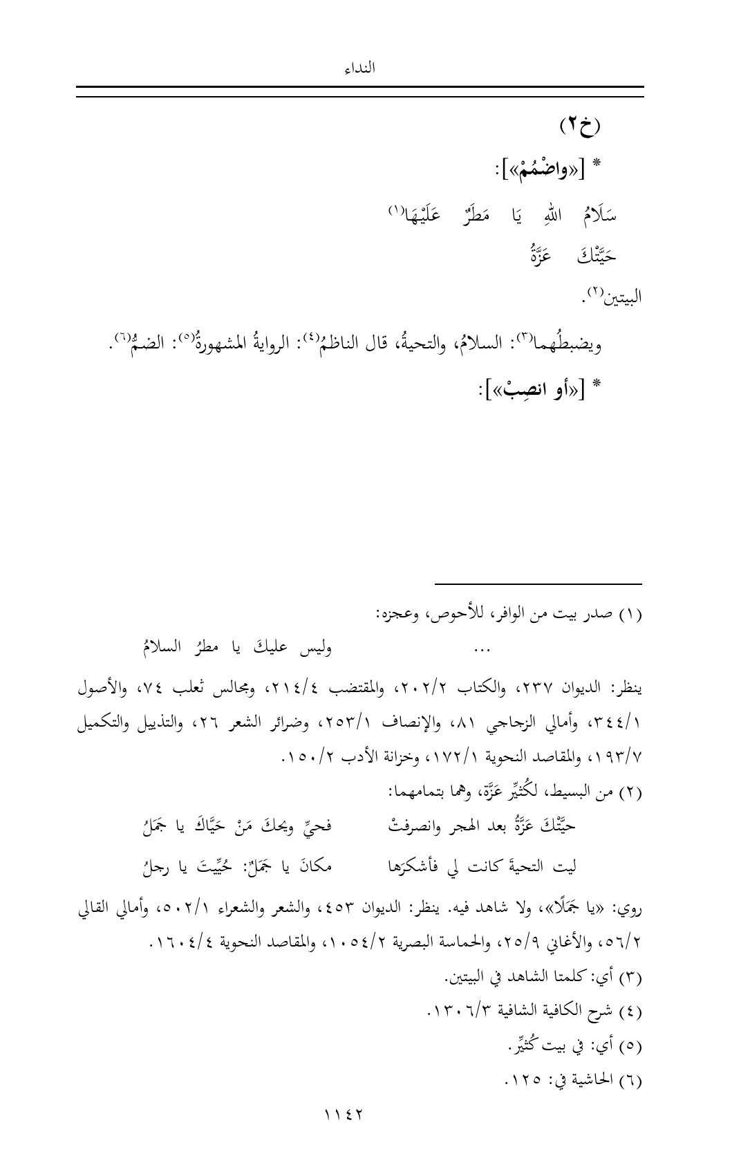 ويضبطُهما (¬٣): السلامُ، والتحيةُ، قال الناظمُ (¬٤): الروايةُ المشهورةُ (¬٥): الضمُّ (¬٦).