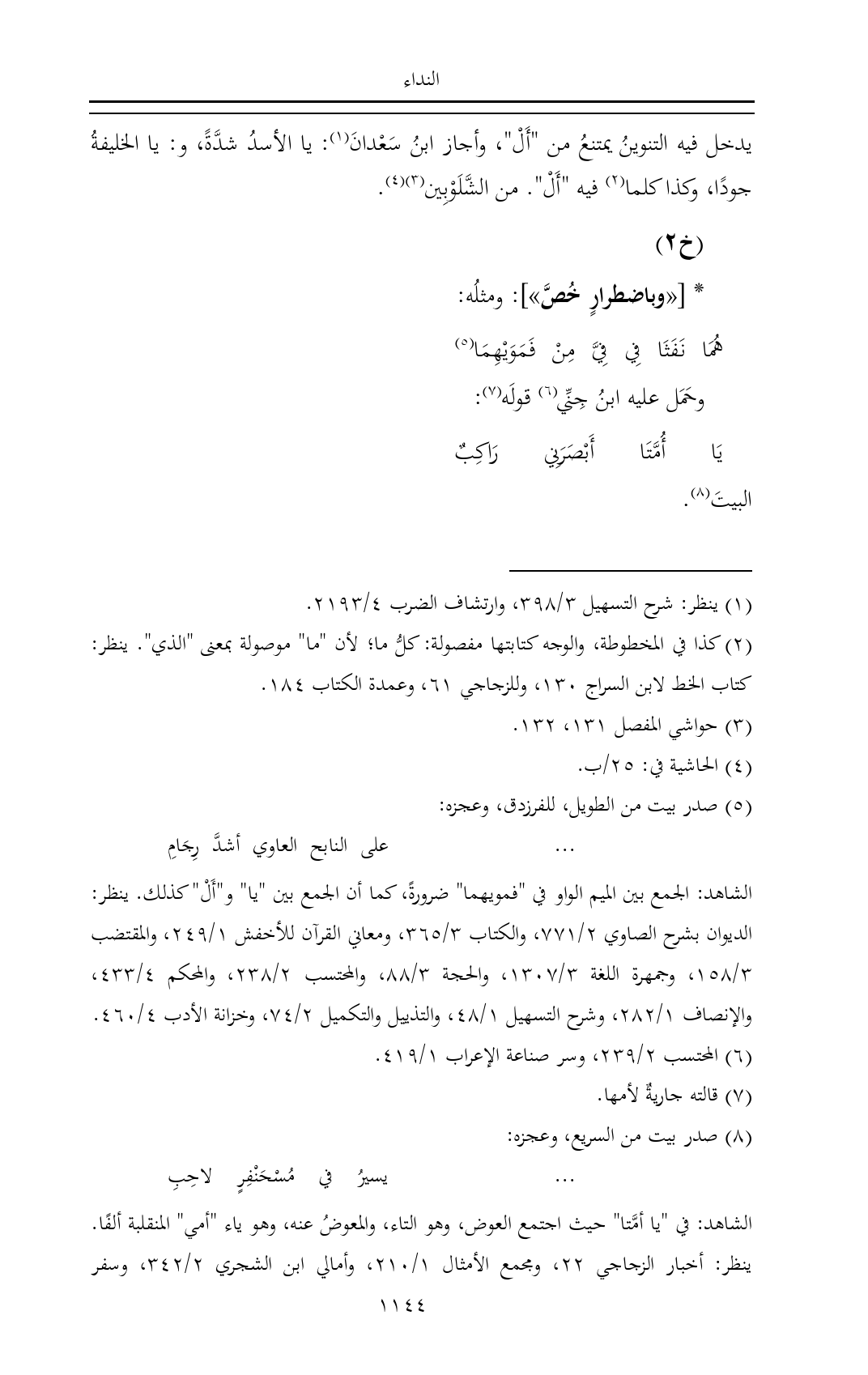 (¬١) ينظر: شرح التسهيل ٣/ ٣٩٨، وارتشاف الضرب ٤/ ٢١٩٣.