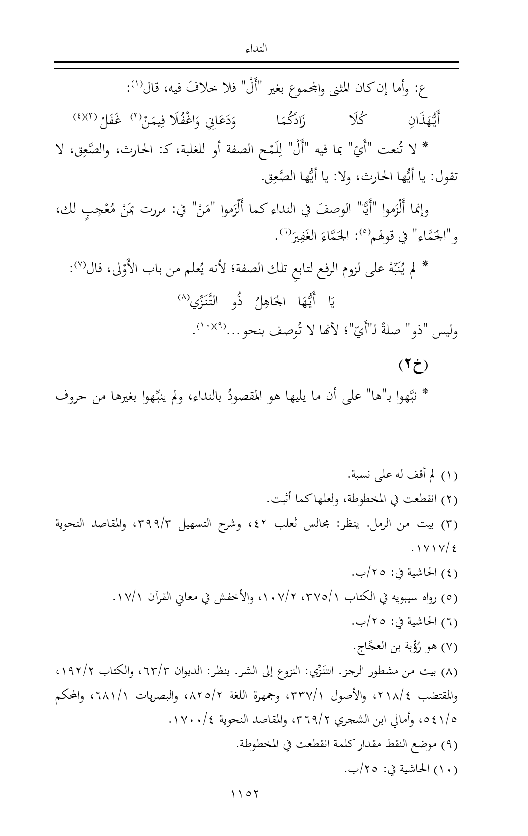 (¬٩) موضع النقط مقدار كلمة انقطعت في المخطوطة.