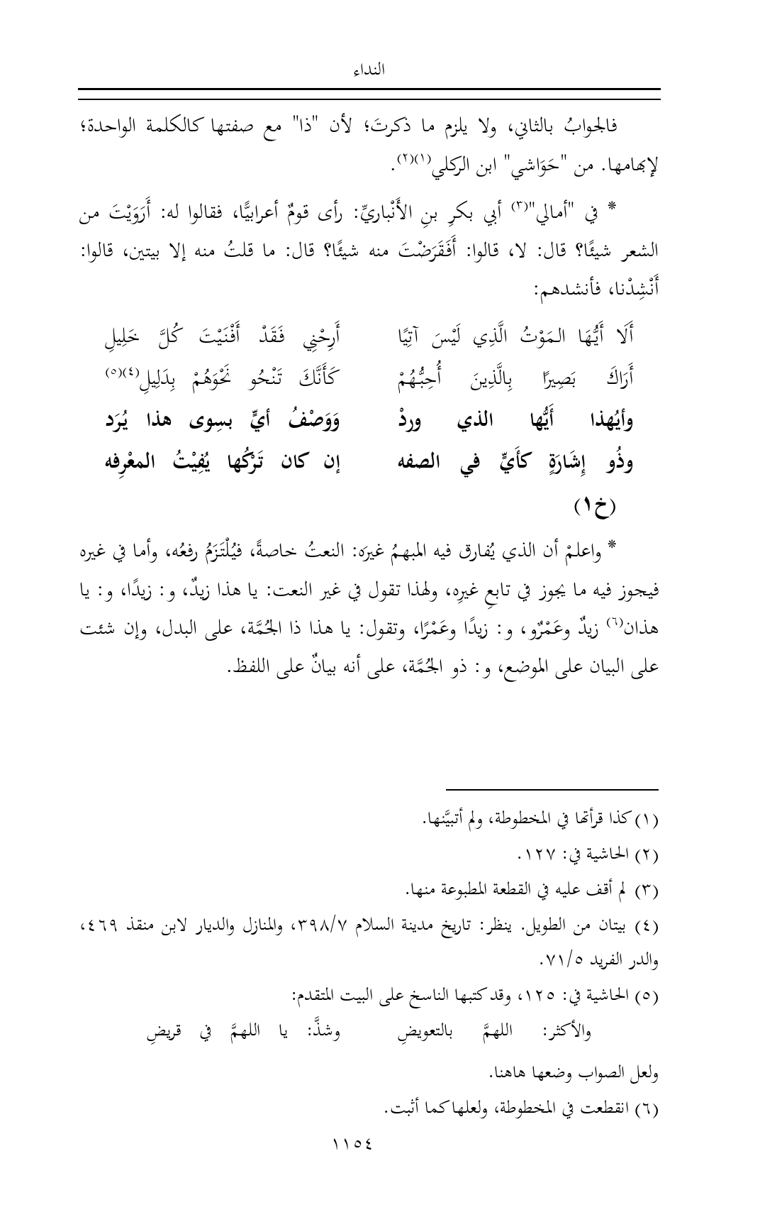 (¬٥) الحاشية في: ١٢٥، وقد كتبها الناسخ على البيت المتقدم: