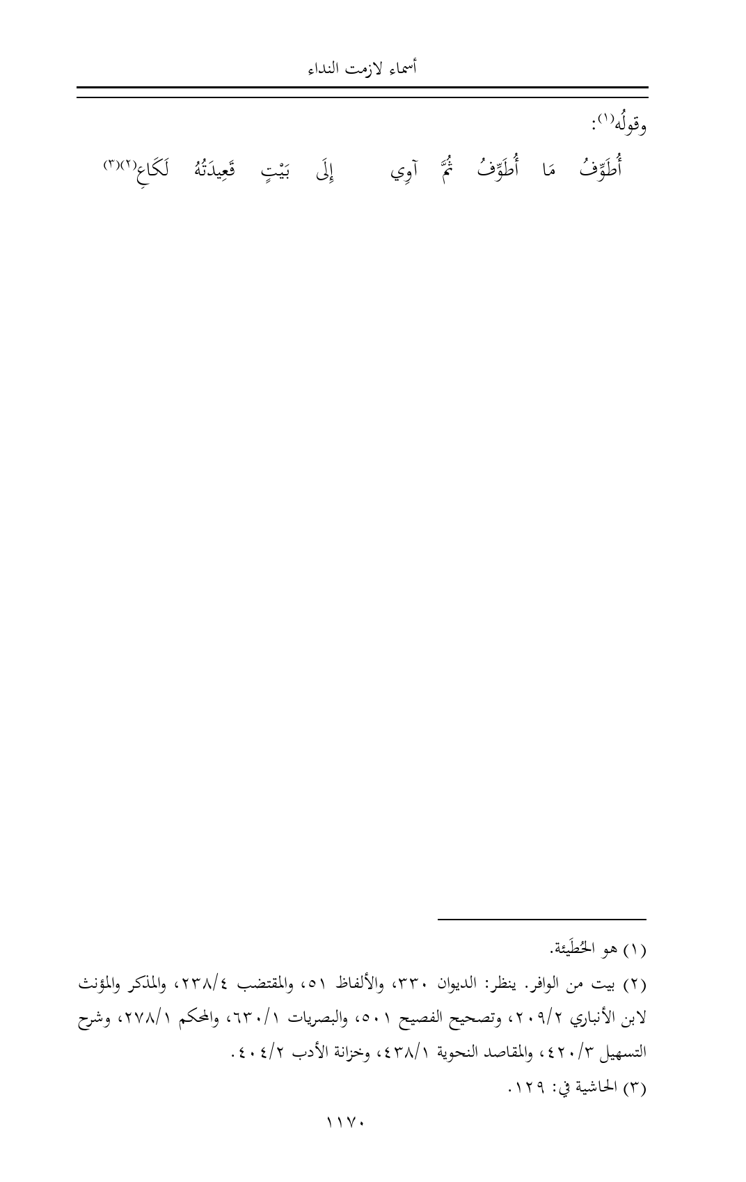 أُطَوِّفُ مَا أُطَوِّفُ ثُمَّ آوِي ... إِلَى بَيْتٍ قَعِيدَتُهُ لَكَاعِ (¬٢) (¬٣)