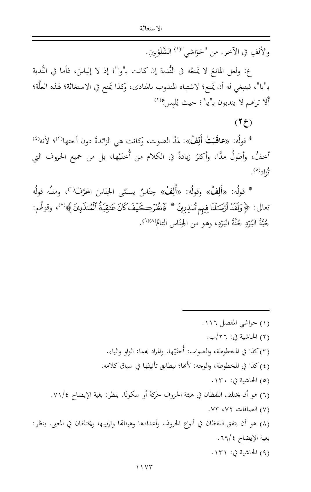 والألفِ في الآخر. من "حَوَاشي" (¬١) الشَّلَوْبِينِ.
