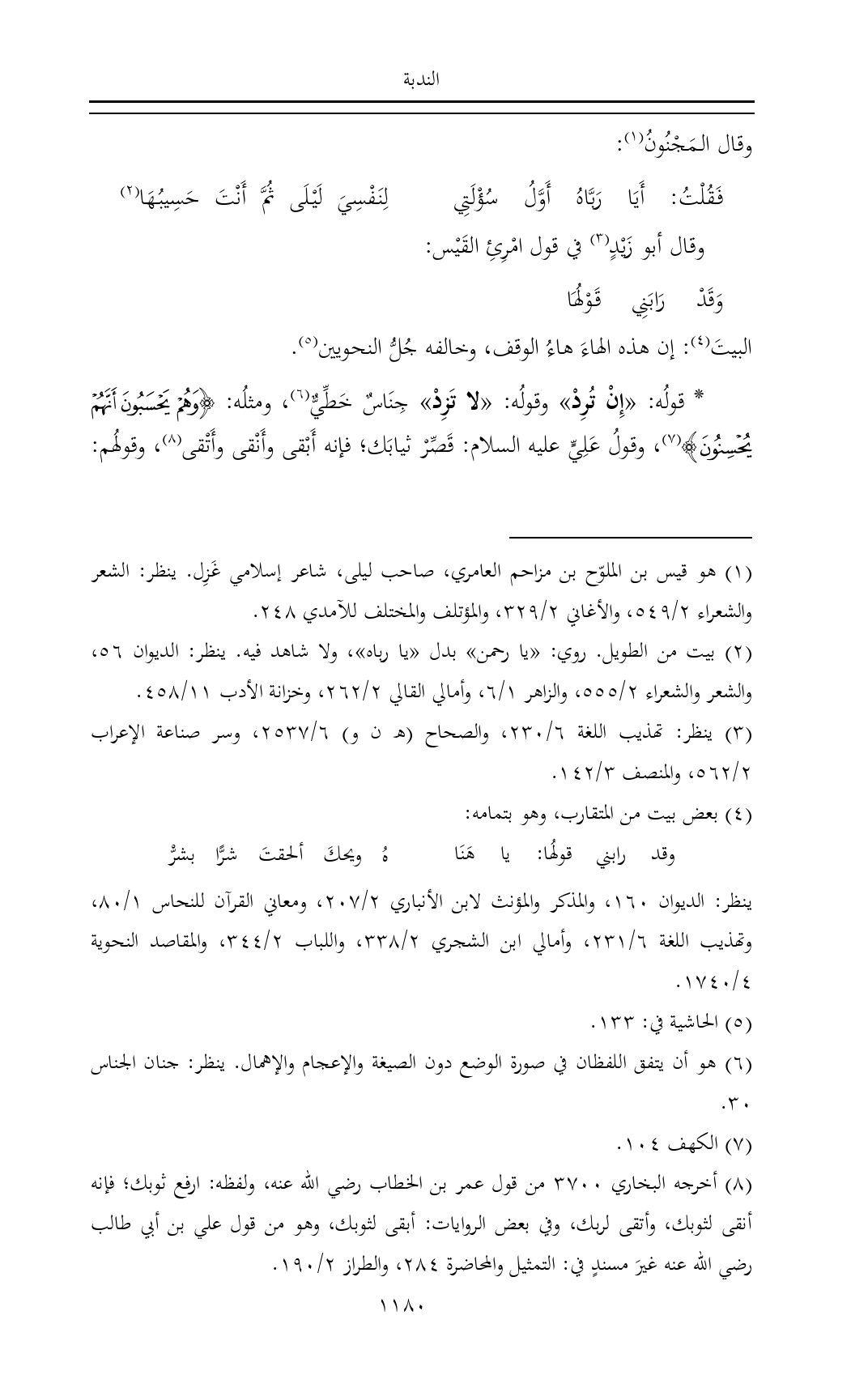 (¬١) هو قيس بن الملوّح بن مزاحم العامري، صاحب ليلى، شاعر إسلامي غَزِل. ينظر: الشعر والشعراء ٢/ ٥٤٩، والأغاني ٢/ ٣٢٩، والمؤتلف والمختلف للآمدي ٢٤٨.