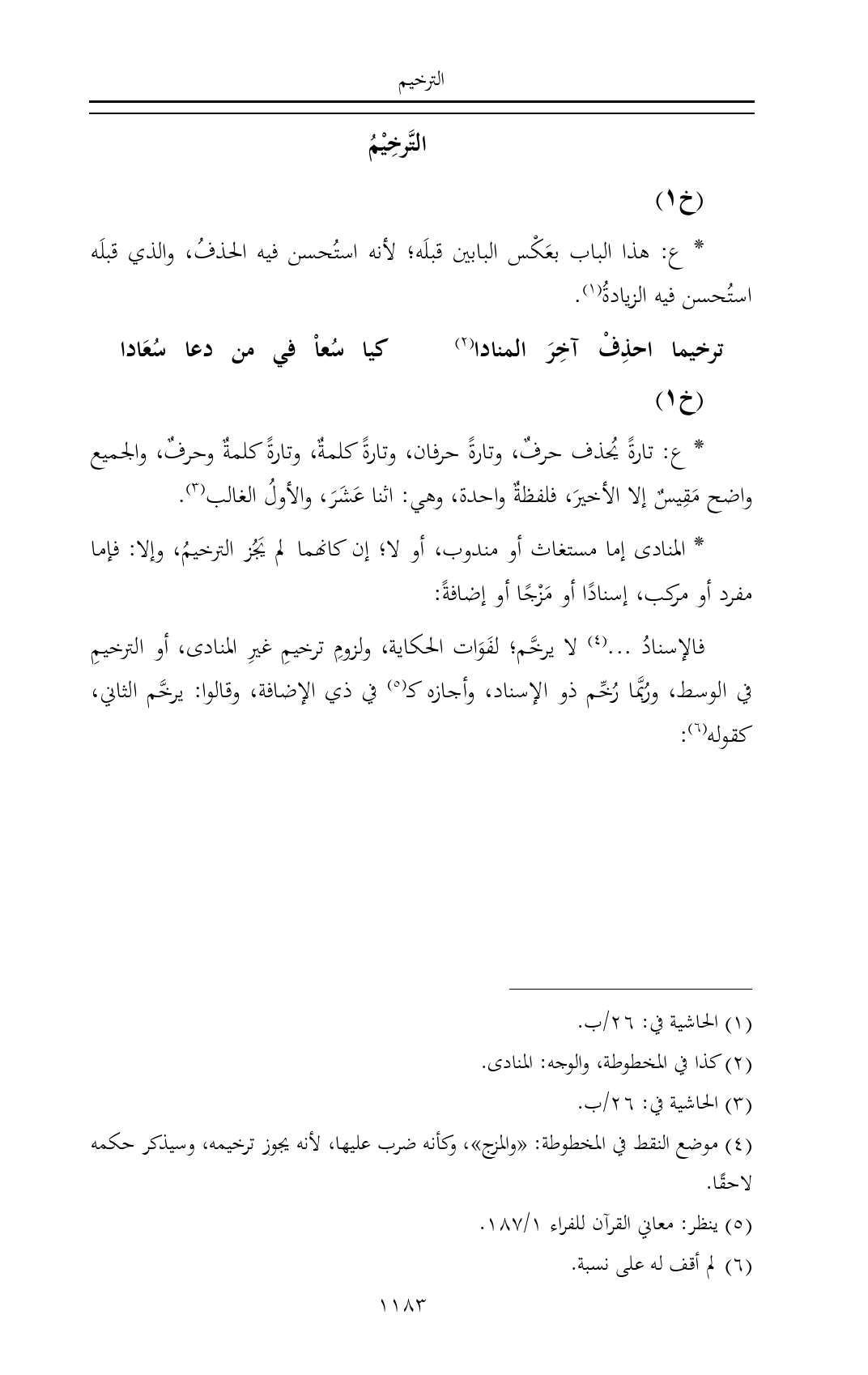 (¬٢) كذا في المخطوطة، والوجه: المنادى.