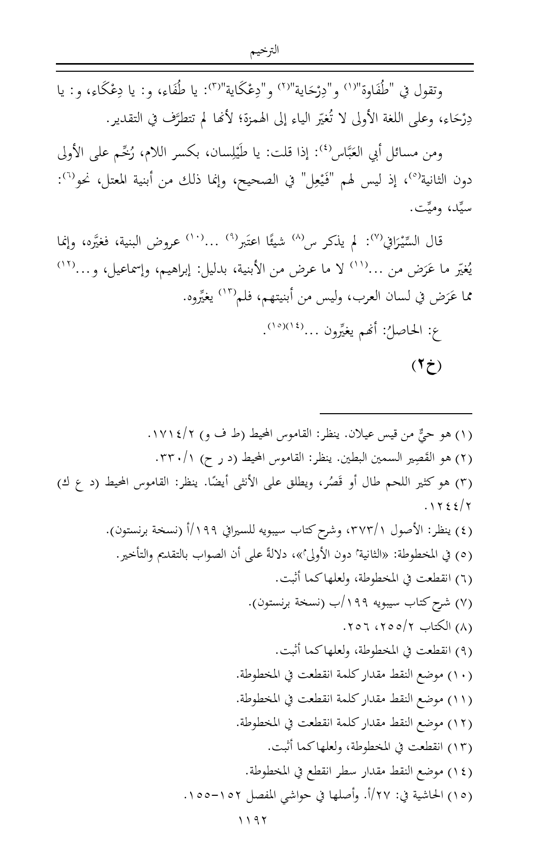 (¬١٤) موضع النقط مقدار سطر انقطع في المخطوطة.