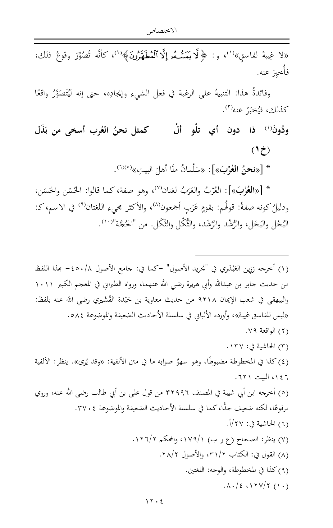 * [«نحنُ العُرْبَ»]: «سَلْمانُ منَّا أهلَ البيتِ» (¬٥) (¬٦).
