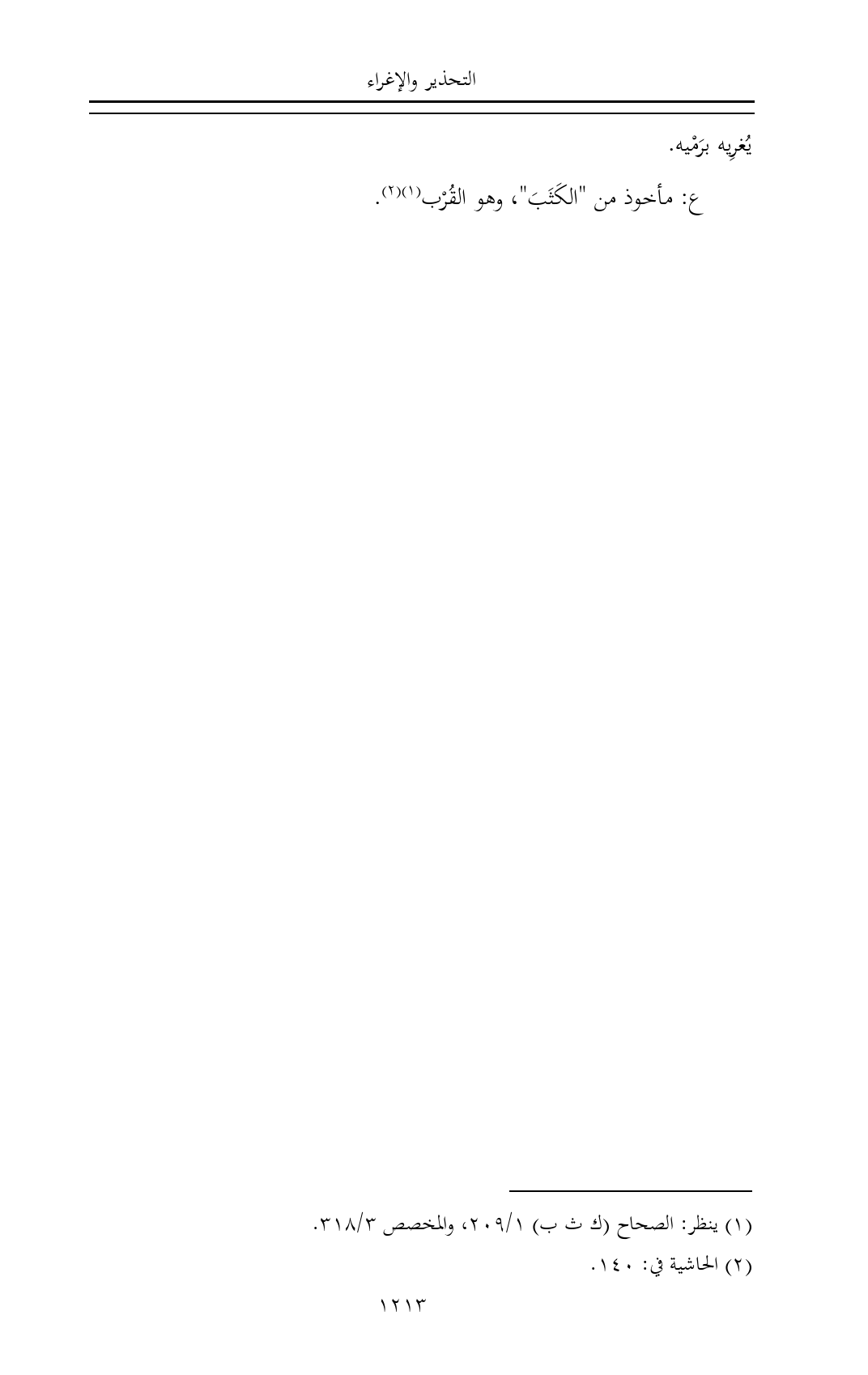 (¬١) ينظر: الصحاح (ك ث ب) ١/ ٢٠٩، والمخصص ٣/ ٣١٨.