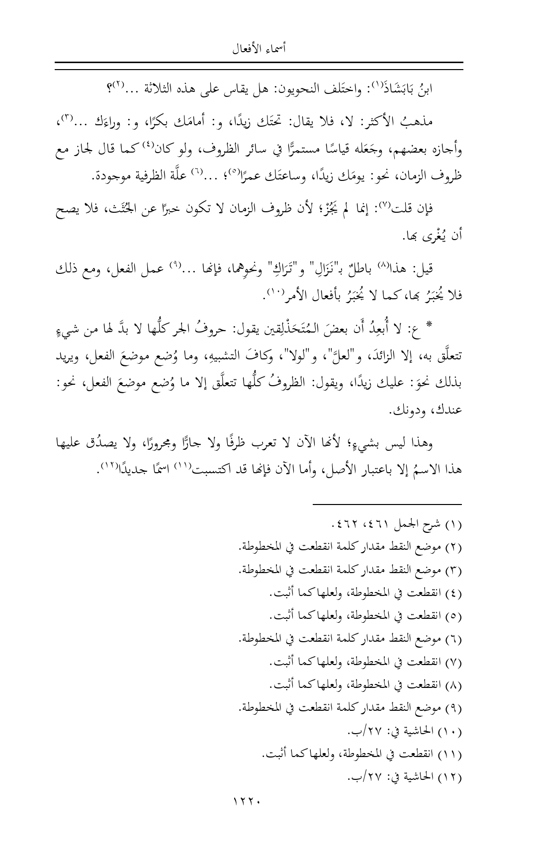 (¬١) شرح الجمل ٤٦١، ٤٦٢.