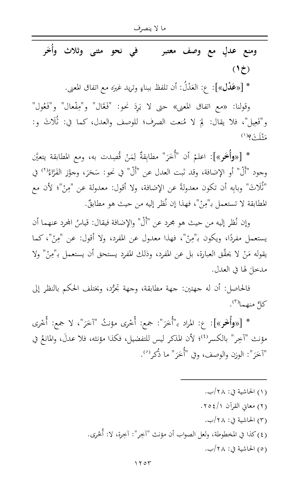 (¬٤) كذا في المخطوطة، ولعل الصواب أن مؤنث "آخِر": آخِرة، لا: أُخْرى.
