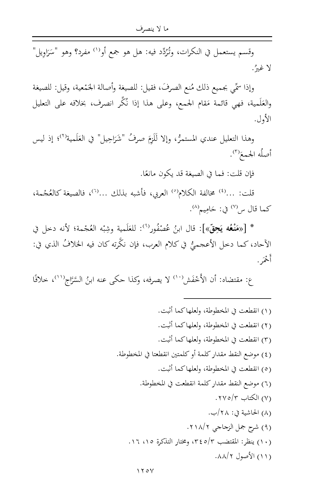 وهذا التعليل عندي المستمرُّ، وإلا لَلَزِمَ صرفُ "شَرَاحِيل" في العَلَمية (¬٢)؛ إذ ليس أصلُه الجمعَ (¬٣).