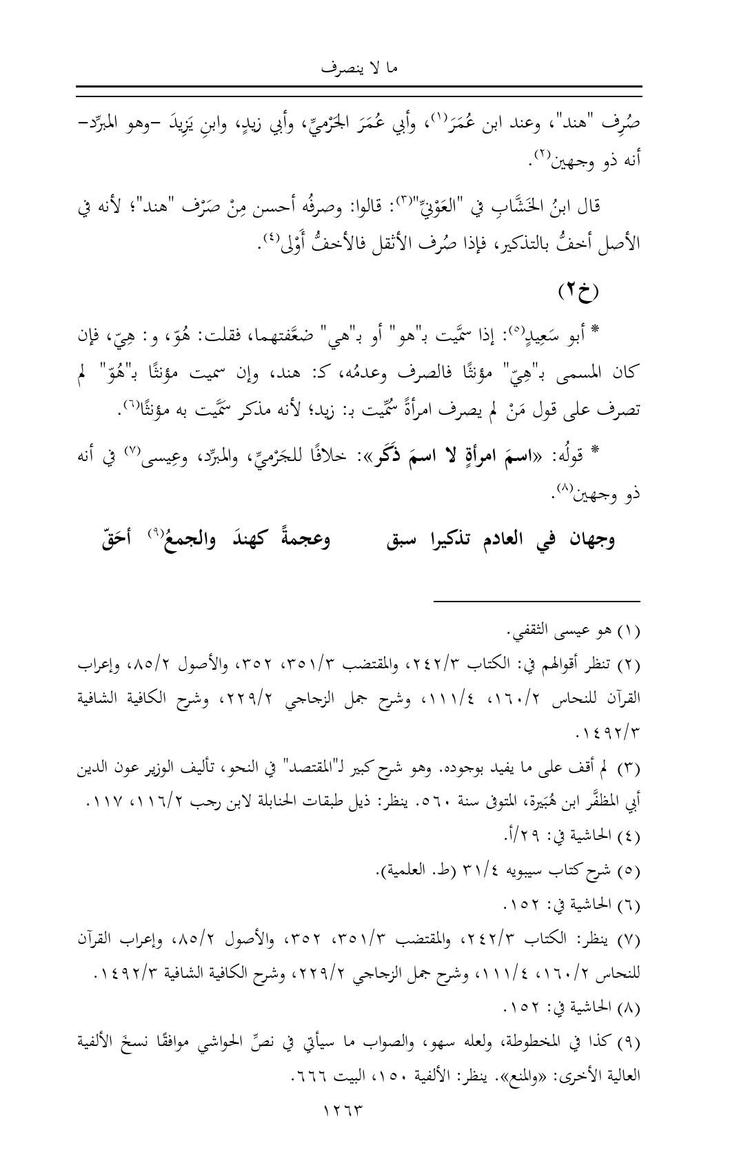 صُرِف "هند"، وعند ابن عُمَرَ (¬١)، وأبي عُمَرَ الجَرْميِّ، وأبي زيدٍ، وابنِ يَزِيدَ -وهو المبرِّد- أنه ذو وجهين (¬٢).