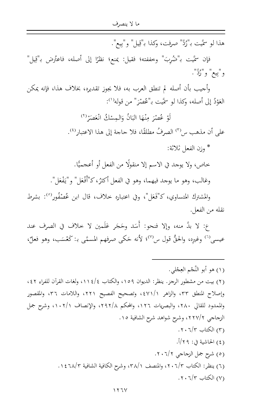 (¬٦) ينظر: الكتاب ٣/ ٢٠٦، والمنصف ١/ ٣٨، وشرح الكافية الشافية ٣/ ١٤٦٨.