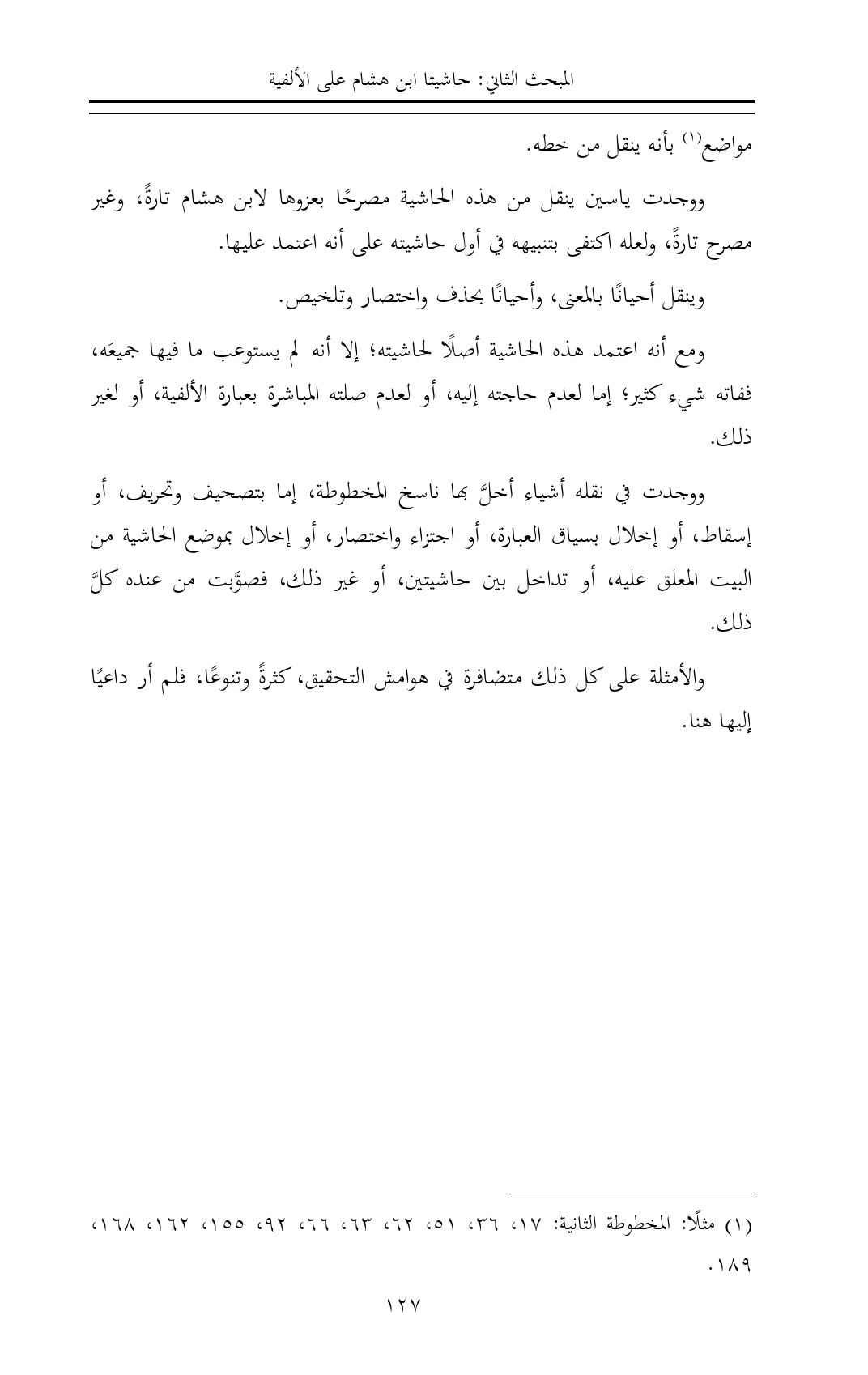(¬١) مثلًا: المخطوطة الثانية: ١٧، ٣٦، ٥١، ٦٢، ٦٣، ٦٦، ٩٢، ١٥٥، ١٦٢، ١٦٨، ١٨٩.