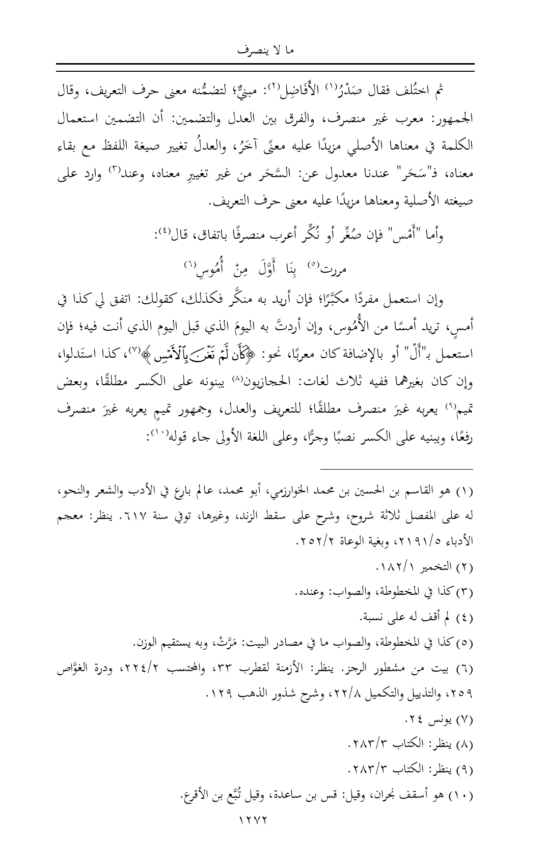 (¬١) هو القاسم بن الحسين بن محمد الخوارزمي، أبو محمد، عالم بارع في الأدب والشعر والنحو، له على المفصل ثلاثة شروح، وشرح على سقط الزند، وغيرها، توفي سنة ٦١٧. ينظر: معجم الأدباء ٥/ ٢١٩١، وبغية الوعاة ٢/ ٢٥٢.