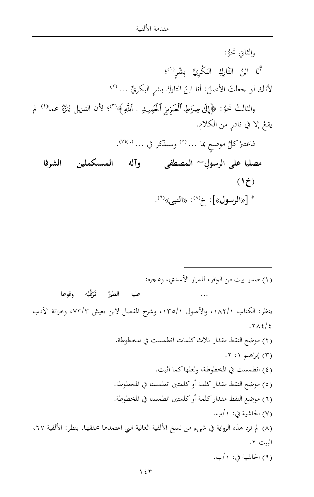 (¬٨) لم ترد هذه الرواية في شيء من نسخ الألفية العالية التي اعتمدها محققها. ينظر: الألفية ٦٧، البيت ٢.