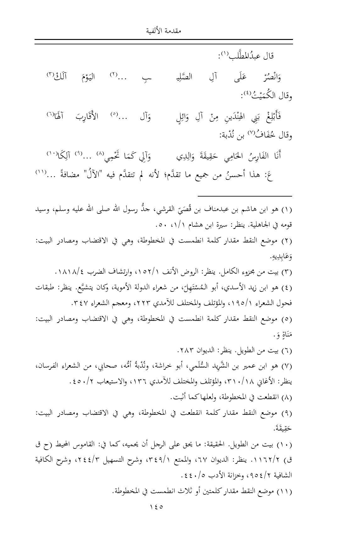(¬٩) موضع النقط مقدار كلمة انقطعت في المخطوطة، وهي في الاقتضاب ومصادر البيت: حَقِيقَةَ.