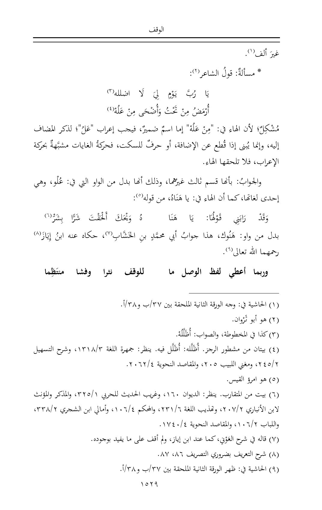 والجوابُ: بأنها قسم ثالث غيرُهما، وذلك أنها بدل من الواو التي في: عُلْو، وهي إحدى لغاتها، كما أن الهاء في: يا هَنَاهُ، من قوله (¬٥):