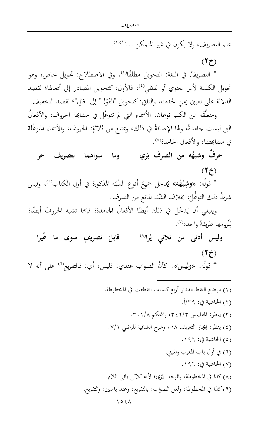 علم التصريف، ولا يكون في غير المتمكن ... (¬١) (¬٢).
