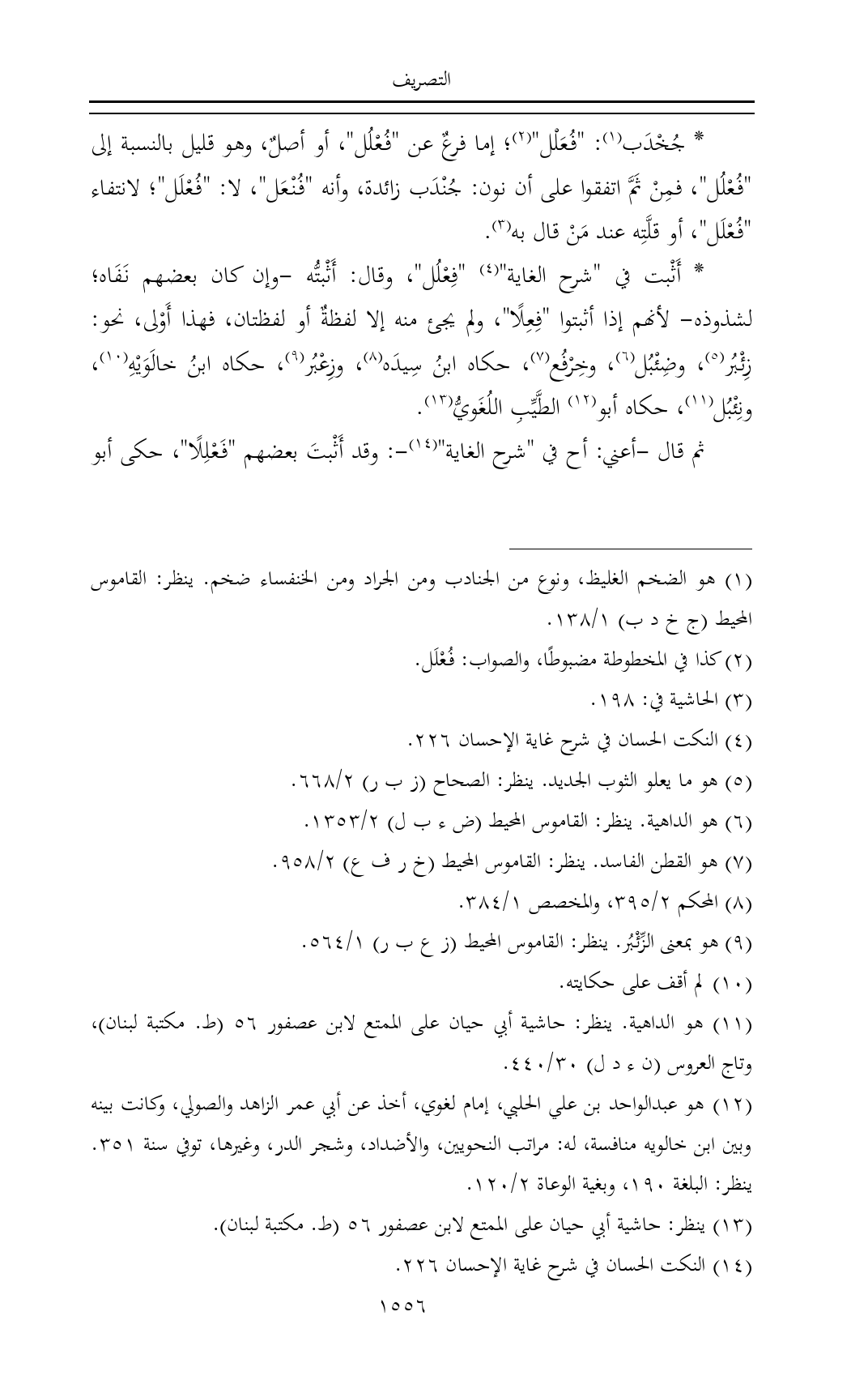 (¬١٣) ينظر: حاشية أبي حيان على الممتع لابن عصفور ٥٦ (ط. مكتبة لبنان).