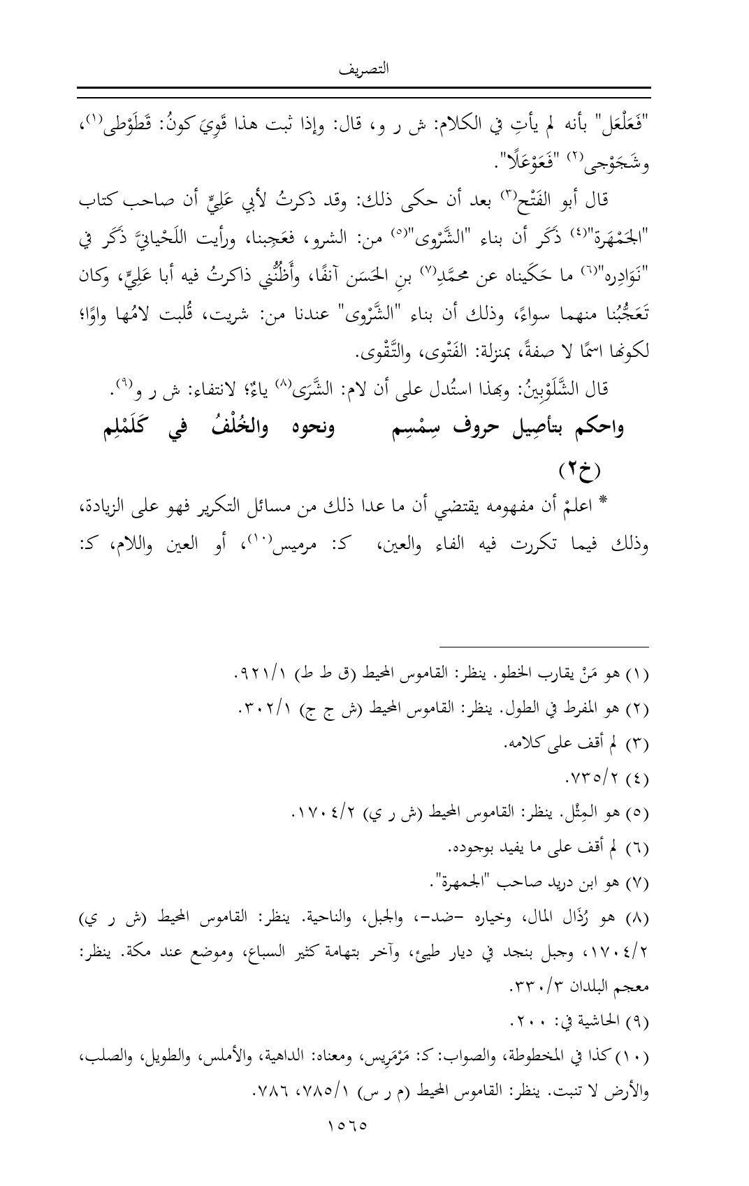 واحكم بتأصِيل حروف سِمْسِم ... ونحوه والخُلْفُ في كَلَمْلِم