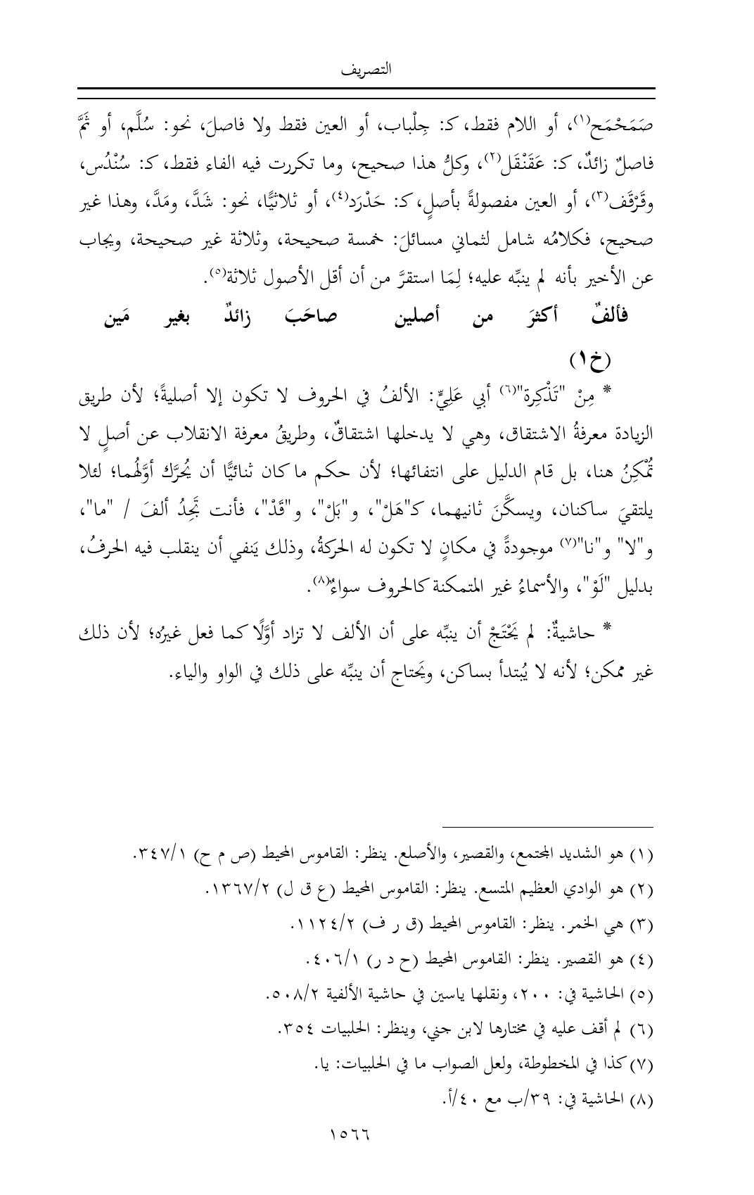 (¬٥) الحاشية في: ٢٠٠، ونقلها ياسين في حاشية الألفية ٢/ ٥٠٨.