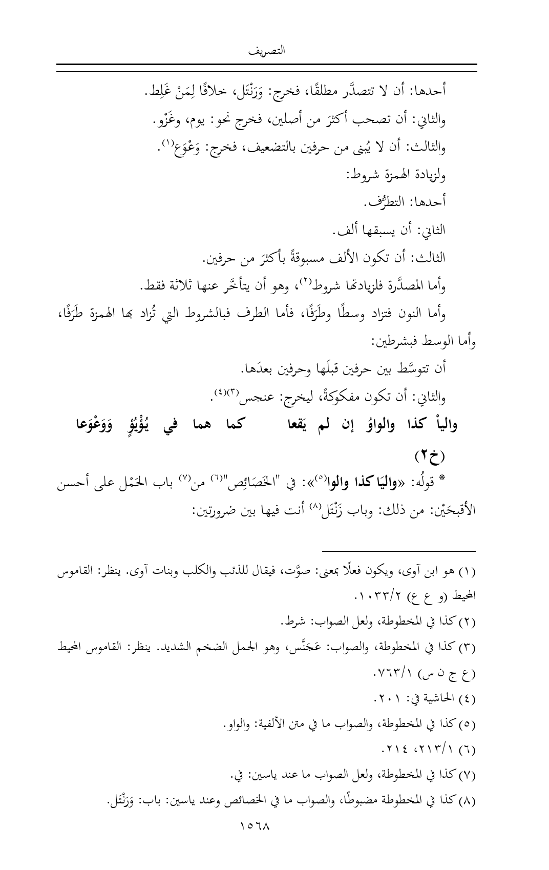 (¬٨) كذا في المخطوطة مضبوطًا، والصواب ما في الخصائص وعند ياسين: باب: وَرَنْتَل.