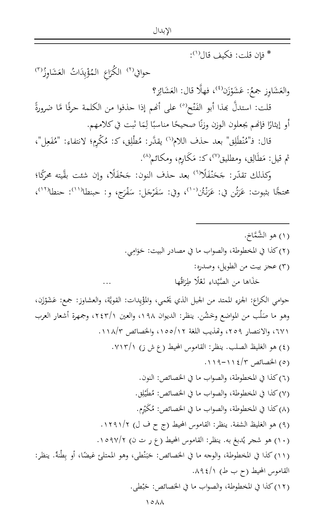 حوافي (¬٢) الكُرَاعِ المُؤْيِدَاتُ العَشَاوِزُ (¬٣)