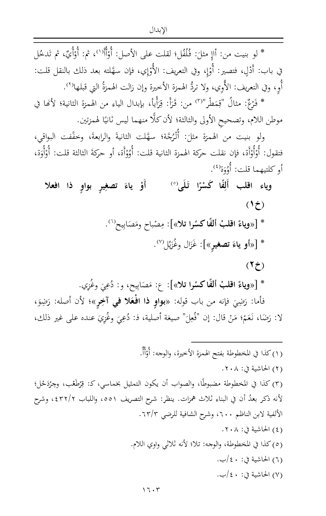 * [«وياءً اقلبْ ألفًا كسًرا تلا»]: مِصْباح ومَصَابِيح (¬٦).