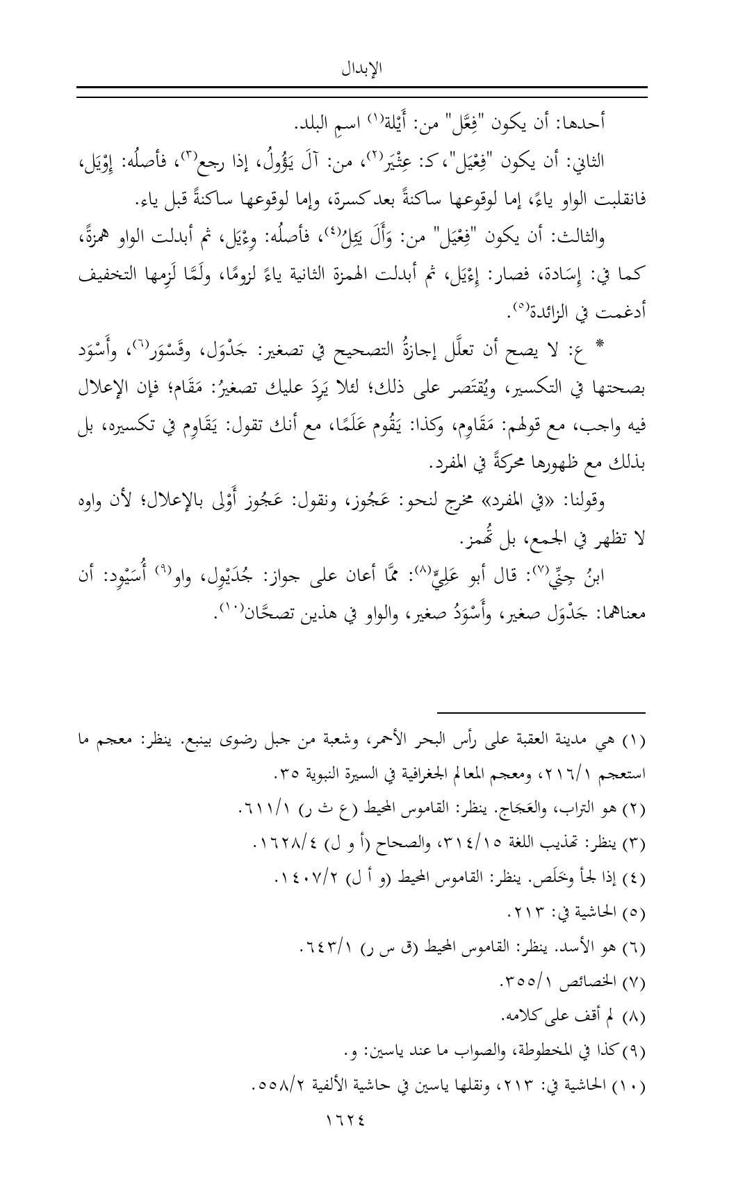ابنُ جِنِّي (¬٧): قال أبو عَلِيٍّ (¬٨): ممَّا أعان على جواز: جُدَيْوِل، واو (¬٩) أُسَيْوِد: أن معناهما: جَدْوَل صغير، وأَسْوَدُ صغير، والواو في هذين تصحَّان (¬١٠).