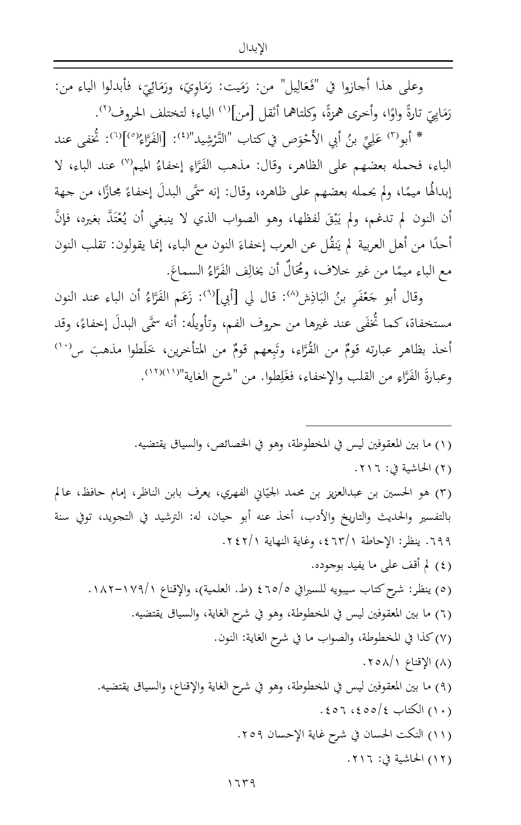 (¬٥) ينظر: شرح كتاب سيبويه للسيرافي ٥/ ٤٦٥ (ط. العلمية)، والإقناع ١/ ١٧٩ - ١٨٢.