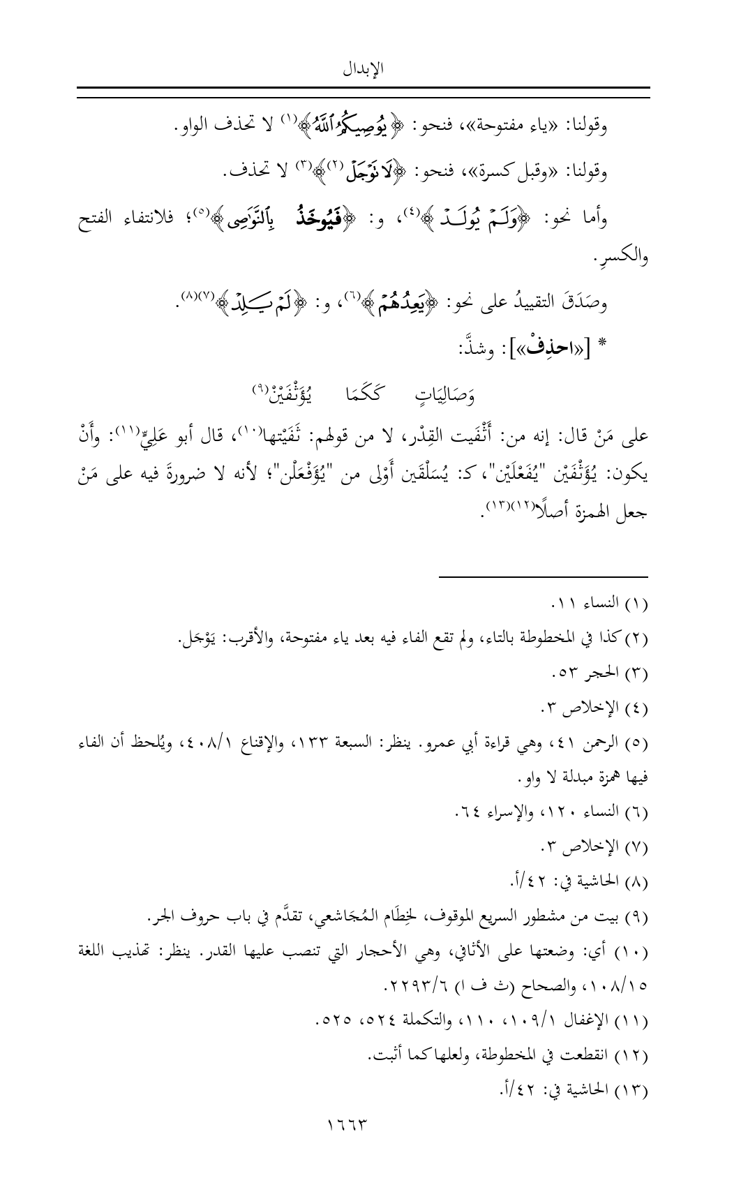 وقولنا: «ياء مفتوحة»، فنحو: {يُوصِيكُمُ اللَّهُ} (¬١) لا تحذف الواو.
