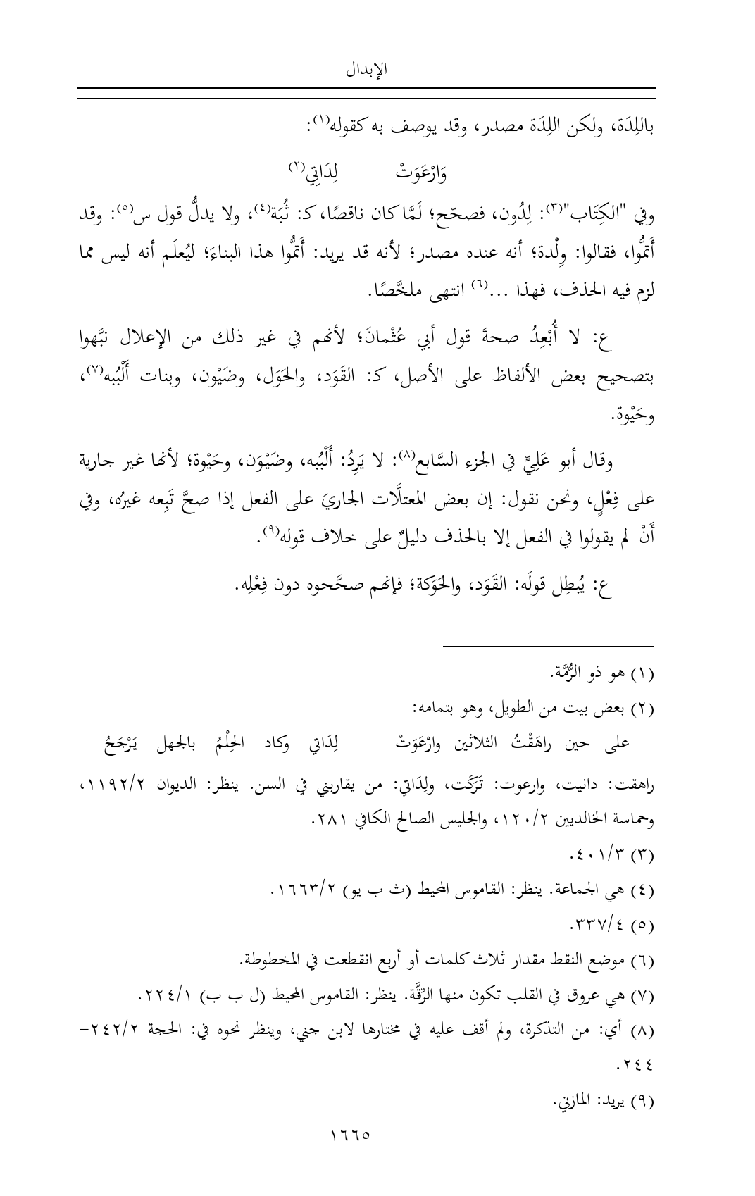 ع: لا أُبْعِدُ صحةَ قول أبي عُثْمانَ؛ لأنهم في غير ذلك من الإعلال نبَّهوا بتصحيح بعض الألفاظ على الأصل، كـ: القَوَد، والحَوَل، وضَيْون، وبنات أَلْبُبه (¬٧)، وحَيْوة.