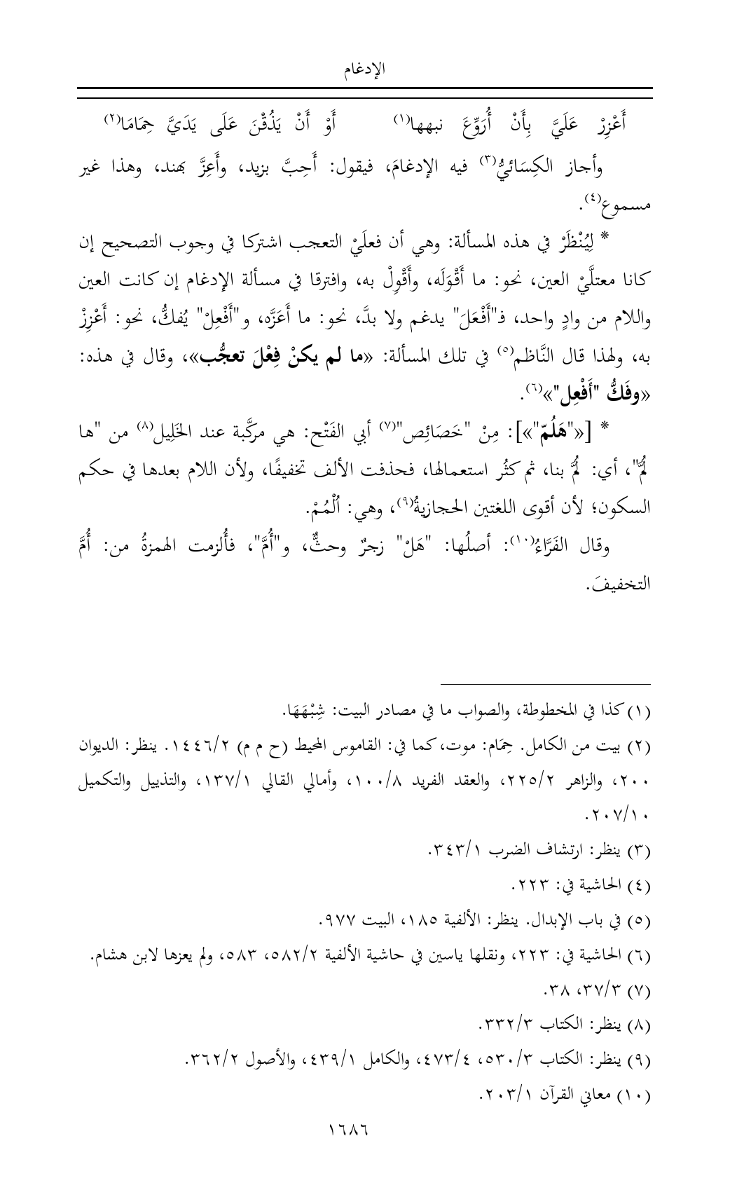 (¬٦) الحاشية في: ٢٢٣، ونقلها ياسين في حاشية الألفية ٢/ ٥٨٢، ٥٨٣، ولم يعزها لابن هشام.