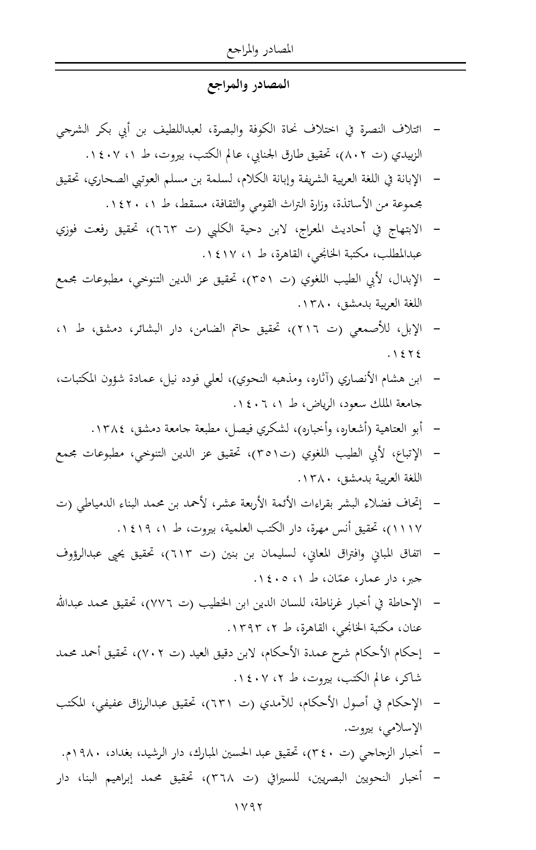 - ائتلاف النصرة في اختلاف نحاة الكوفة والبصرة، لعبداللطيف بن أبي بكر الشرجي الزبيدي (ت ٨٠٢)، تحقيق طارق الجنابي، عالم الكتب، بيروت، ط ١، ١٤٠٧.