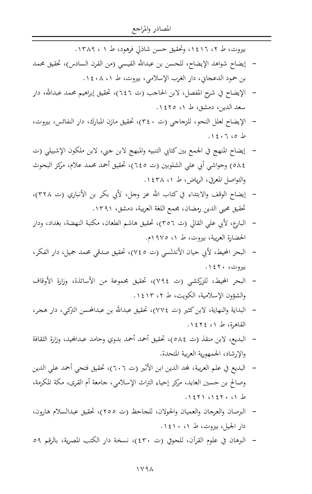 - البحر المحيط، للزركشي (ت ٧٩٤)، تحقيق مجموعة من الأساتذة، وزارة الأوقاف والشؤون الإسلامية، الكويت، ط ٢، ١٤١٣.