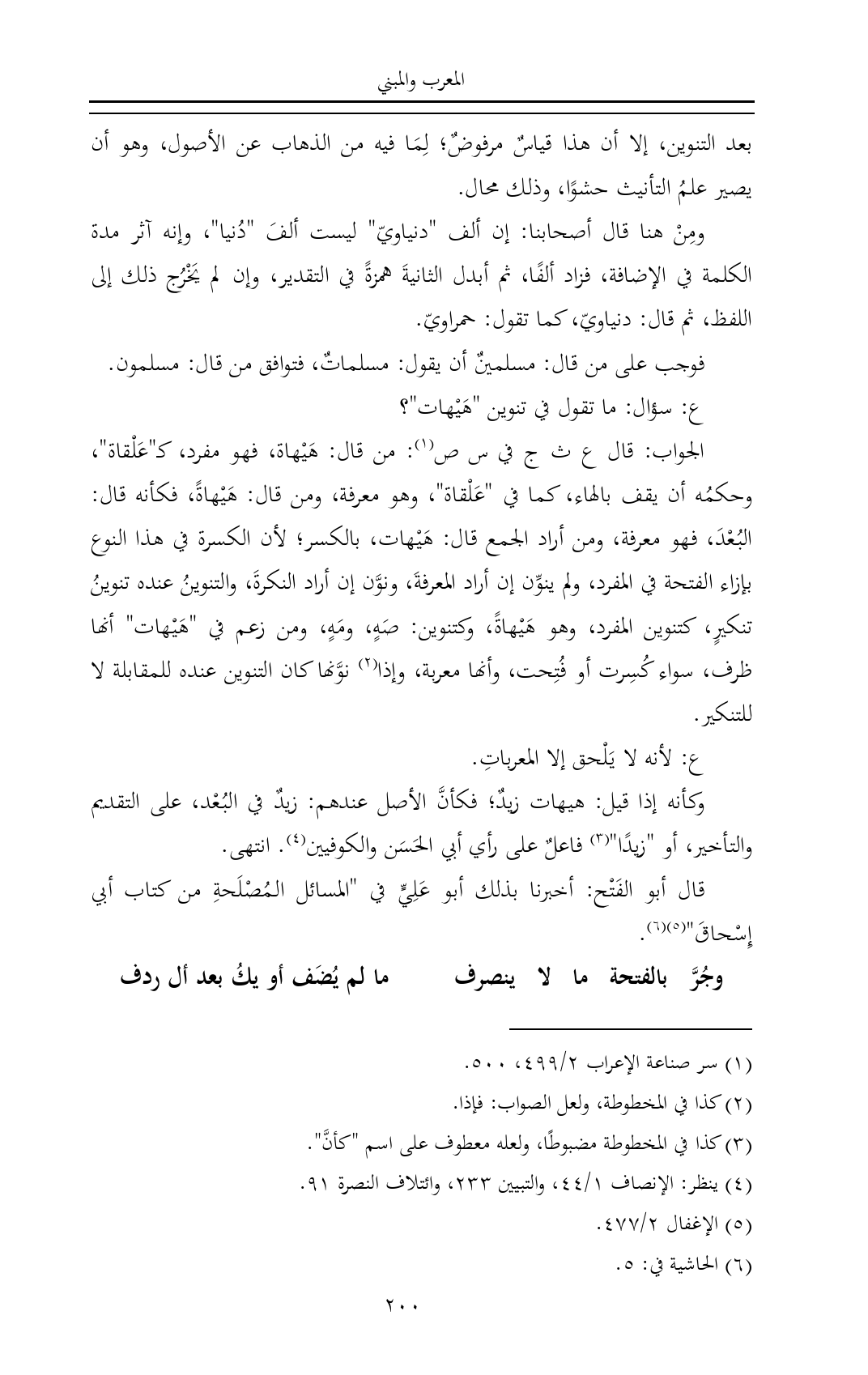 (¬١) سر صناعة الإعراب ٢/ ٤٩٩، ٥٠٠.